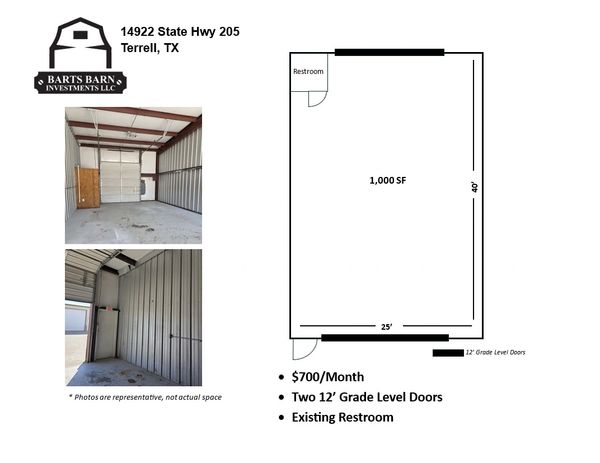 Light Industrial unit available on State Highway 205. Property features
